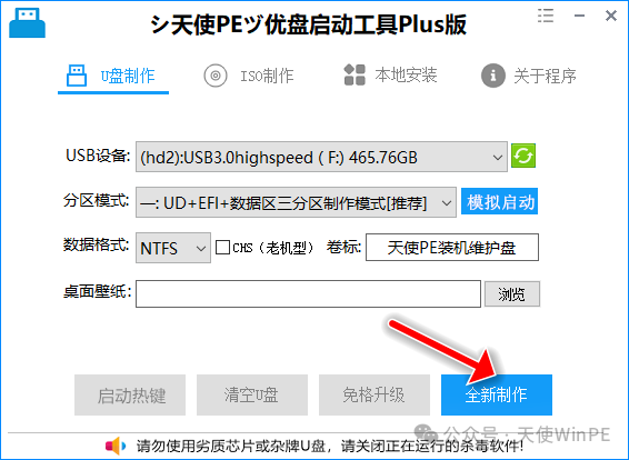 PS:制作 PE 会完全格式化 U 盘!请提前备份 U 盘内资料!