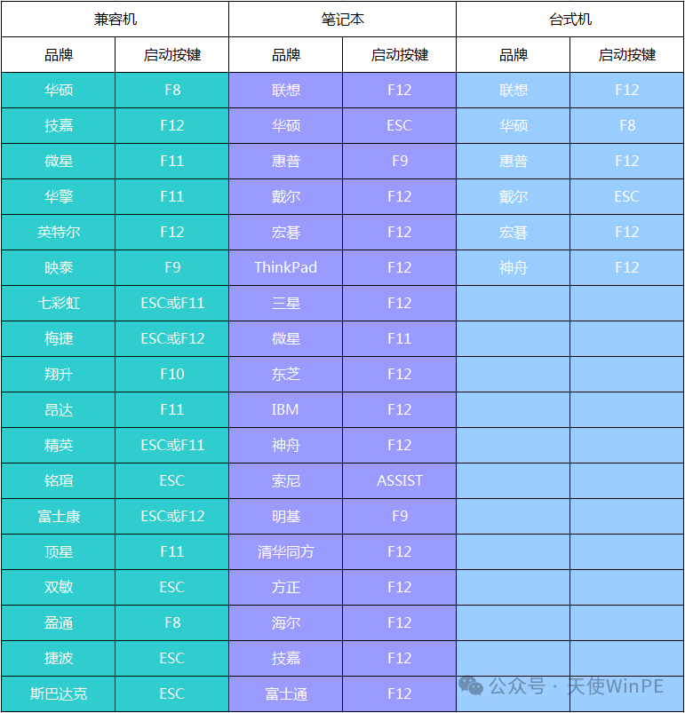 狂按快捷键  [按照电脑主板的品牌找] , 部分机型需要:FN + 快捷键一起按!
